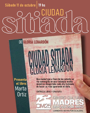 Este sábado a las 19hs se realizará la presentación del libro Ciudad Sitiada de Gloria Lenardón. A fines de los setenta la ciudad se vio sumergida en una violencia oculta mientras despertaba cada día tratando de hacer su vida ignorando el daño. Presentará el libro Marta Ortiz. La entrada es libre y gratuita.